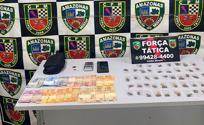 Na capital, policiais militares da Força Tática prenderam um homem de 25 anos pelo crime de tráfico de drogas no bairro Petrópolis, zona sul. Durante a abordagem, a guarnição encontrou em posse do suspeito 46 porções de maconha, uma balança de precisão, um aparelho celular e R$ 413 em espécie. Ele foi encaminhado ao 6º Distrito Integrado de Polícia (DIP), onde foi autuado em flagrante pelo crime.