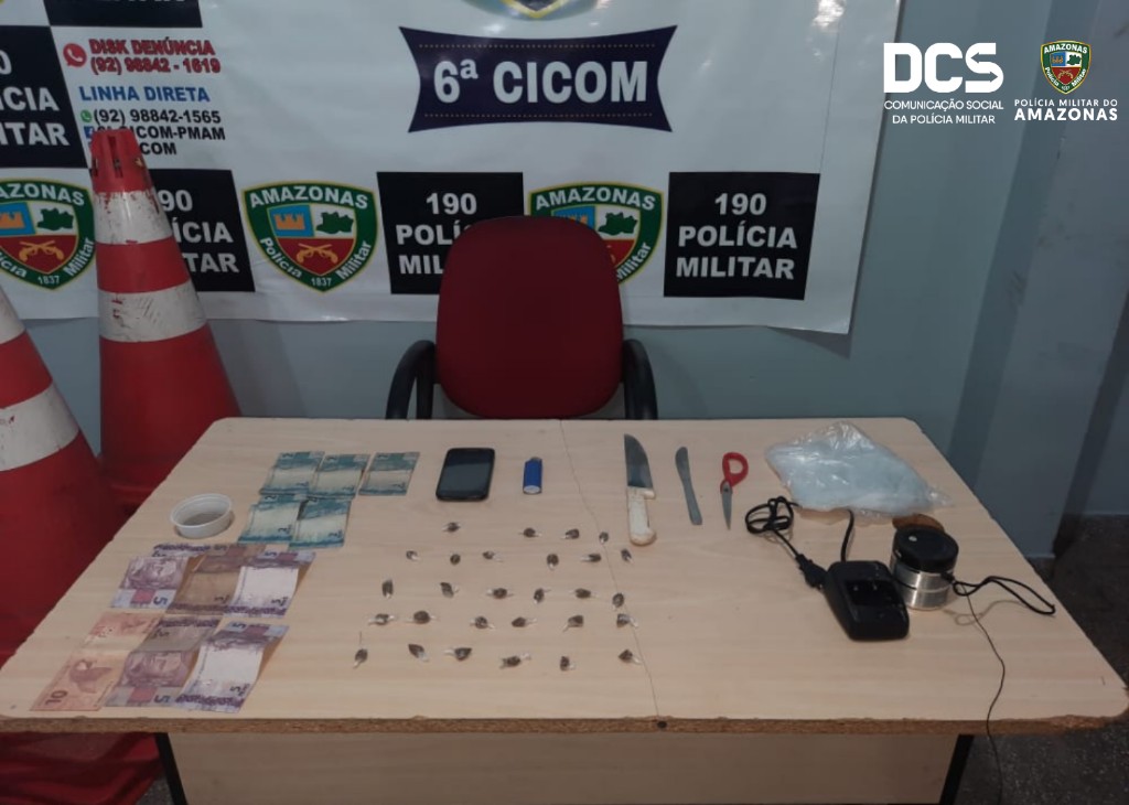 Policiais militares da 6ª Companhia Interativa Comunitária (Cicom) efetuaram, na manhã deste sábado (19/12), a detenção de dois homens, de 20 e 25 anos, por prática de comércio ilícito de drogas, no conjunto Francisca Mendes, bairro Cidade Nova, na zona norte da capital.