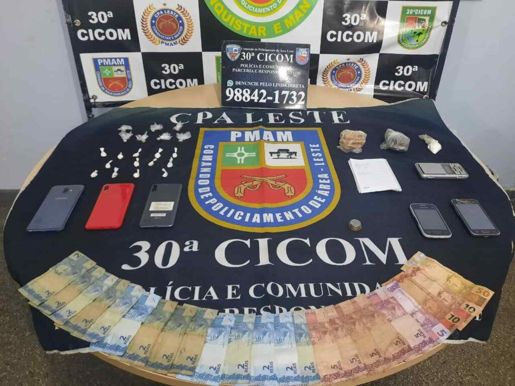 Policiais militares da 30ª Companhia Interativa Comunitária (Cicom) detiveram, em diferentes ações na noite de quarta-feira (03/11), um homem de 20 anos, encontrado em posse de drogas, e uma mulher de 43 anos, flagrada em poder de uma arma de fogo, no bairro Jorge Teixeira, na zona leste da cidade.