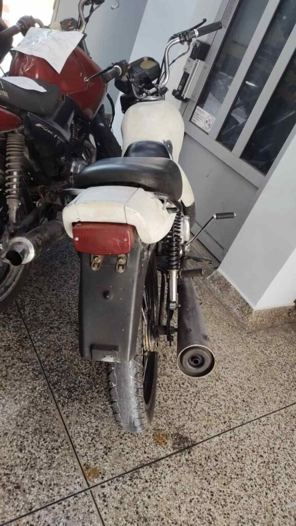 A equipe policial trafegava na rua Mirasselva com rua Campo Grande quando avistou dois homens em uma motocicleta modelo Honda CG, de cor branca, sem placa. Ao avistar a equipe policial, a dupla fugiu, sendo acompanhada pela viatura. Quando os dois suspeitos foram interceptados, o garupa desembarcou da moto e escapou, não sendo mais localizado.