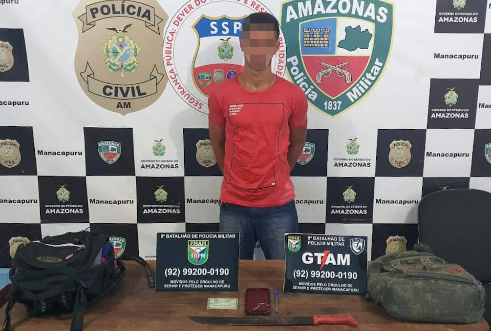 Em Itamarati (a 985 quilômetros de Manaus), um homem de 26 anos foi preso por policiais militares no bairro São José após denúncia de roubo. Ele foi flagrado com uma arma branca e confessou o crime.