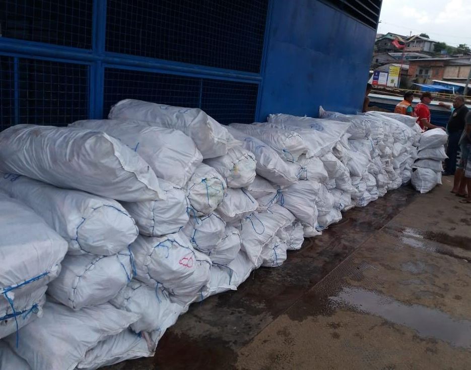 Durante a revista na embarcação “Leydy Layze”, foram encontradas 7,6 toneladas de piracatinga em 127 sacas, além de 5,9 quilos de pirarucu salgado em 80 sacas.