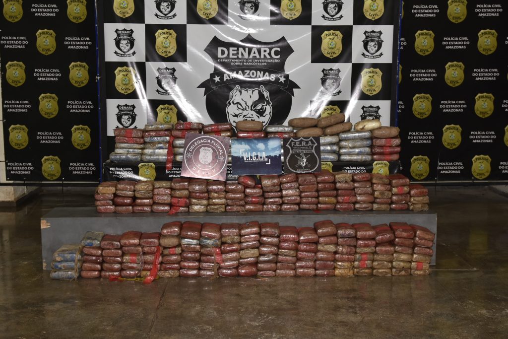 A Polícia Civil do Amazonas (PC-AM), por meio do Departamento de Investigação sobre Narcóticos (Denarc), em ação conjunta com a Secretaria de Estado de Segurança Pública (SSP-AM), Grupo Força Especial de Resgate e Assalto (Fera) e a Delegacia Fluvial (Deflu), realizou na tarde de domingo (17/01), por volta das 16h, a operação “Campos”, que resultou na apreensão de 280 quilos de maconha do tipo skunk e nas prisões em flagrante de quatro pessoas, por envolvimento nos crimes de tráfico de drogas e associação ao tráfico de drogas.