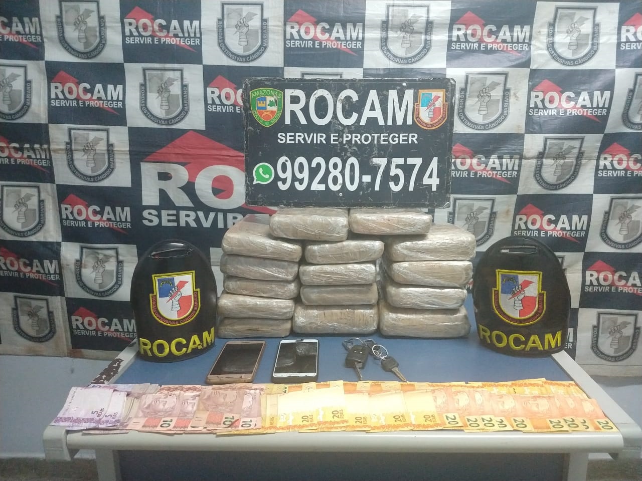 Foram apreendidos 15 tabletes de possivelmente maconha tipo Skunk (Foto: Divulgação/PMAM)
