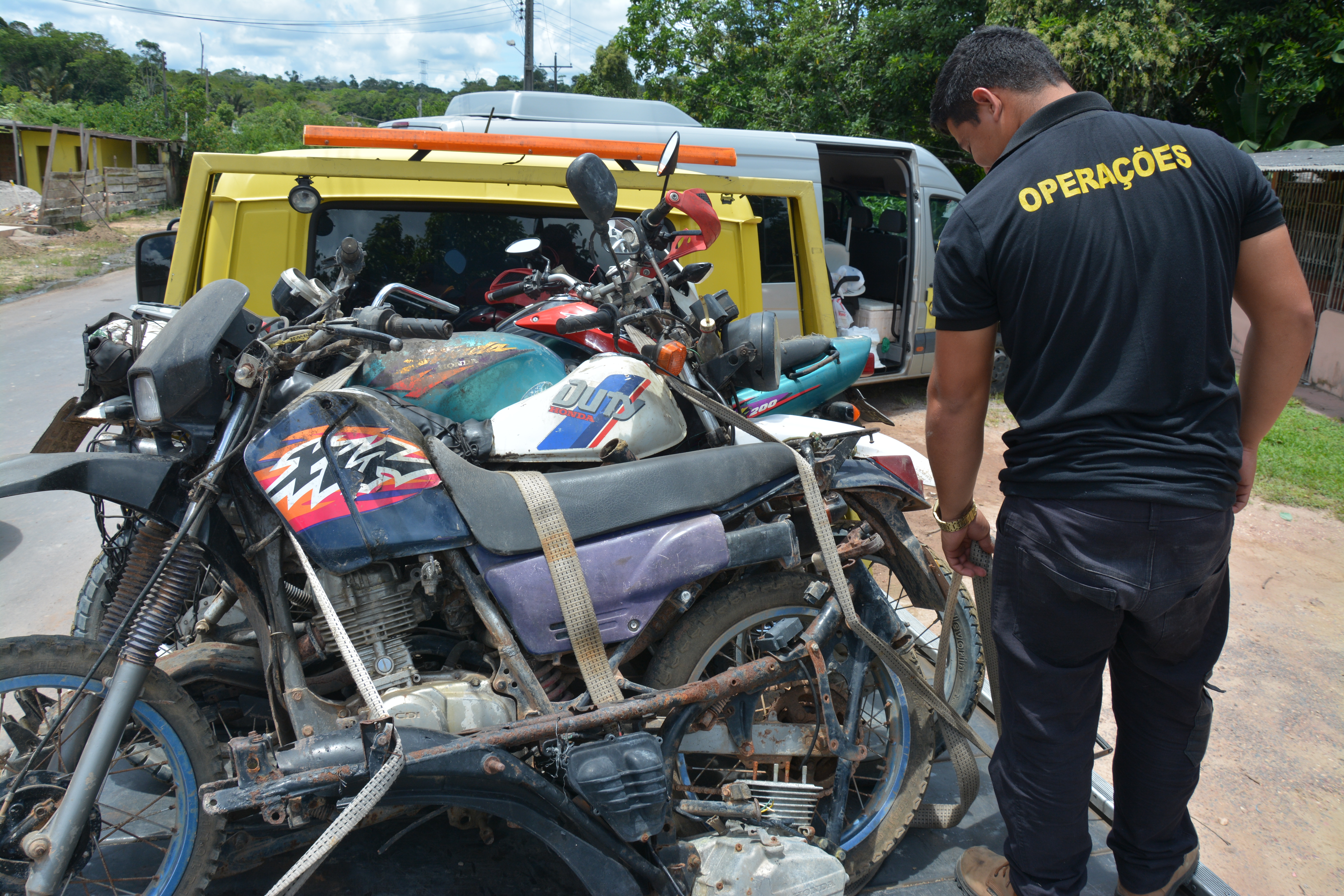 Na operação, cinco motocicletas foram apreendidas em um sítio, localizado em uma estrada do ramal do “Pau Rosa”. A suspeita era de que o local era usado como área de desmanche dos veículos. As motos estavam sem a documentação e possuíam o chassi adulterado. Uma delas estava sem o motor e outras já tinham sido retiradas algumas suas peças.