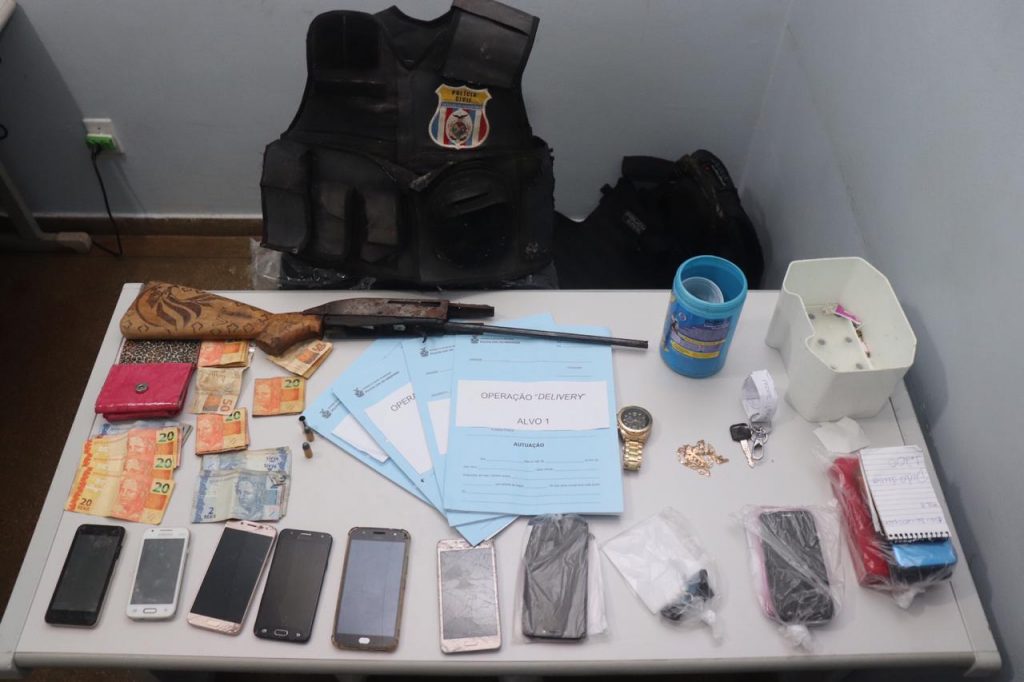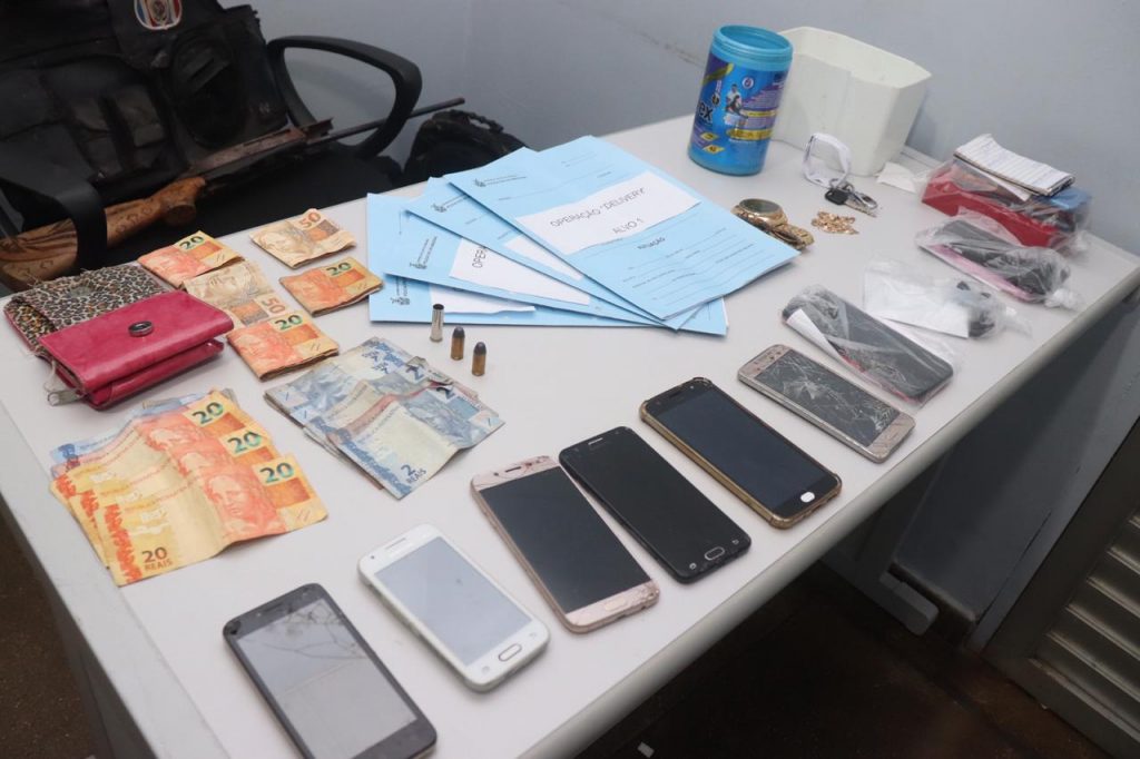 Durante a ação, as equipes apreenderam uma espingarda, munições, oito aparelhos de celular e dinheiro em espécie, proveniente das vendas das substâncias ilícitas.