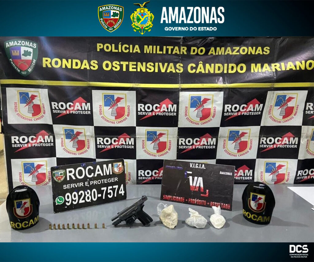 Policiais militares das Rondas Ostensivas Cândido Mariano (Rocam) detiveram, na tarde de sexta-feira (16/04), um homem por tráfico de drogas e porte ilegal de arma de fogo, durante a Operação Hórus, no município de Tabatinga (a 1.108 quilômetros de Manaus).