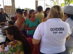 Em sua quarta visita, o principal objetivo do atendimento da Ouvidoria Geral da SSP-AM em comunidades é dar ao cidadão o pleno acesso à segurança pública, levando a possibilidade de fazer solicitações, denúncias, reclamações e sugestões referentes ao Sistema de Segurança do Amazonas. Para isso, o órgão vai até bairros, comunidades e municípios para explanar sobre os serviços à população.