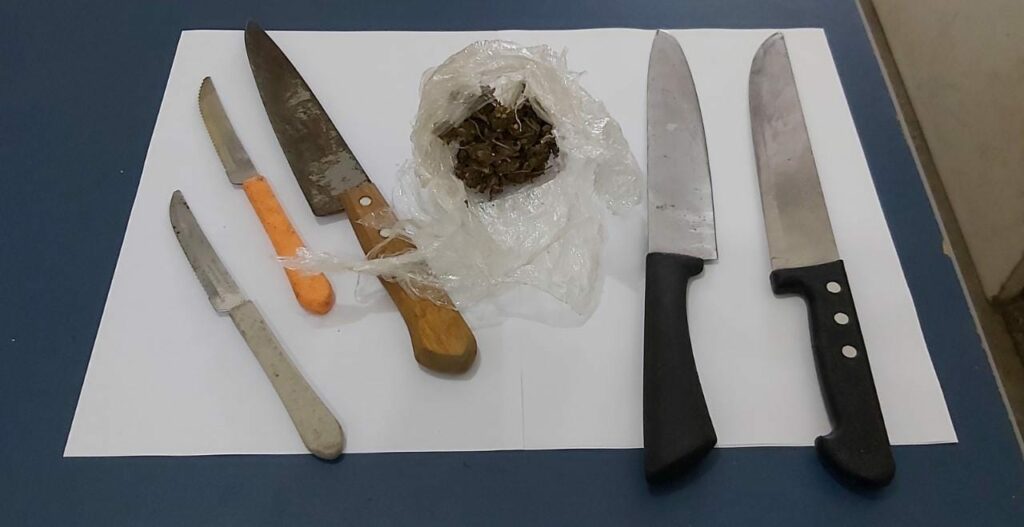 “Recebemos as denúncias, montamos a ação conjunta e ao chegarmos à localidade, constatamos a veracidade das informações. Abordamos os adolescentes, e com eles foram encontradas cinco armas brancas e uma porção de maconha do tipo skunk”, relatou o investigador.