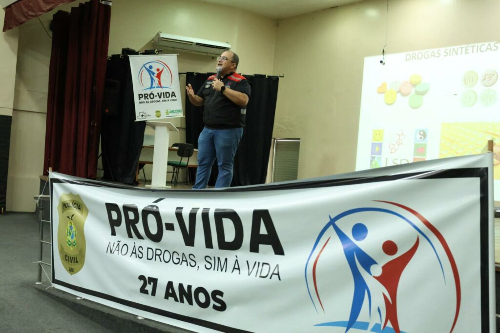 A Polícia Civil do Amazonas (PC-AM), celebra, nesta quarta-feira (27/07), os 27 anos do Programa de Prevenção, Revisão, Orientação, Vida, Independência, Dignidade e Amor (Pró-Vida), com uma ação educativa na Escola Estadual Engenheiro Professor Sérgio Alfredo Pessoa Figueiredo. O evento contou com a presença de alunos de diferentes faixas etárias, além de autoridades, palestrantes e integrantes das forças policiais.