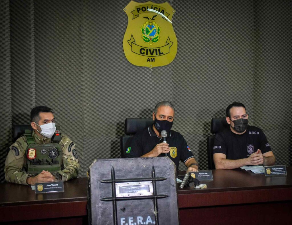 Durante coletiva de imprensa realizada nesta quinta-feira (02/12), no prédio da Delegacia Geral (DG), na avenida Pedro Teixeira, bairro Dom Pedro, zona centro-oeste, o delegado-geral adjunto da PC-AM, Tarson Yuri Soares, destacou o trabalho bem sucedido realizado pelos policiais nesta operação.