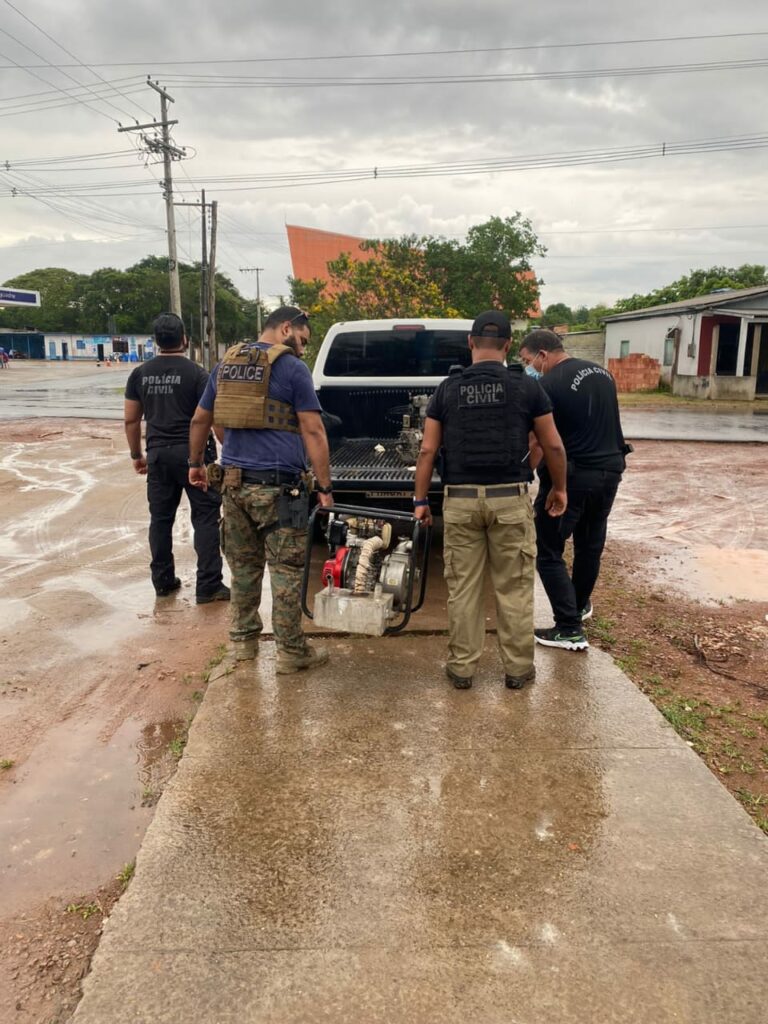 Os policiais civis recuperaram vários objetos provenientes de furtos, entre eles: motores de popa, motosserras, bombas d’água, botijas de gás, entre outros.