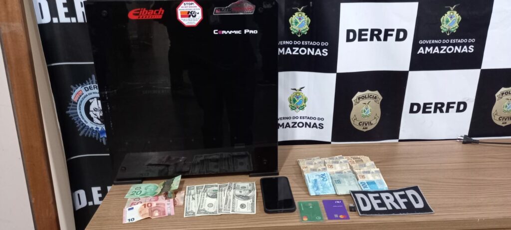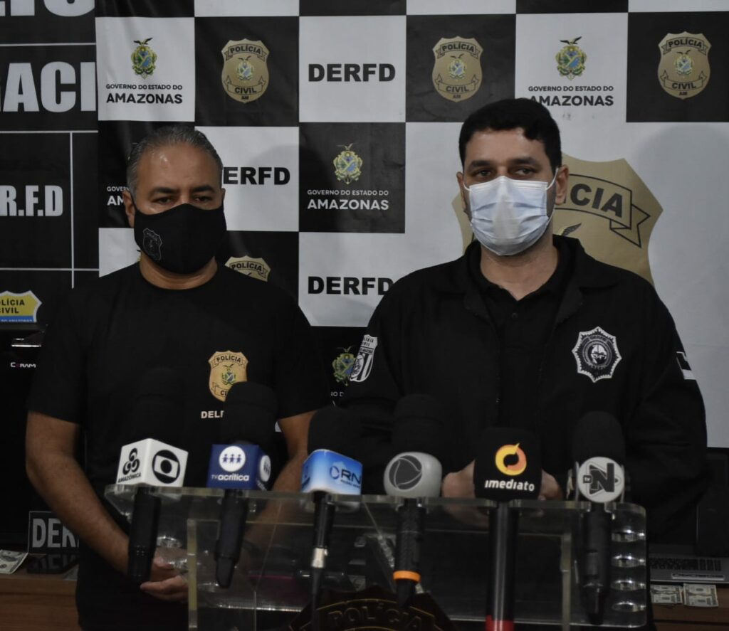 Durante coletiva de imprensa realizada na sede da DERFD, no bairro Alvorada, zona centro-oeste, o delegado-geral adjunto da Polícia Civil, Tarson Yuri Soares, destacou o trabalho realizado pelas equipes policiais, que cumpriram oito mandados de busca e apreensão em zonas distintas de Manaus, e apreenderam diversos objetos da organização criminosa.