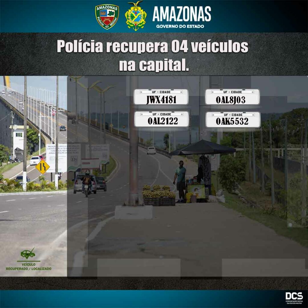 Os policiais das 8°, 10ª e 20° Companhias Interativas Comunitárias (Cicoms) foram responsáveis pelas localizações dos veículos nos bairros Tarumã, Compensa e Alvorada.