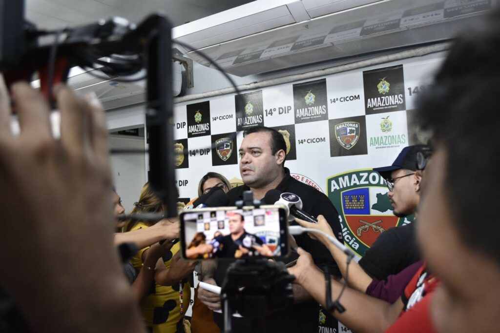 Durante coletiva de imprensa realizada no 14° DIP, o delegado Christiano Castilho, titular da unidade policial, informou que quatro pessoas participaram da ação criminosa; Jhones, Larissa Pereira Simplício, conhecida como “Formiguinha”, que também já foi presa pela PMAM, além de outros dois indivíduos que estão sendo investigados.