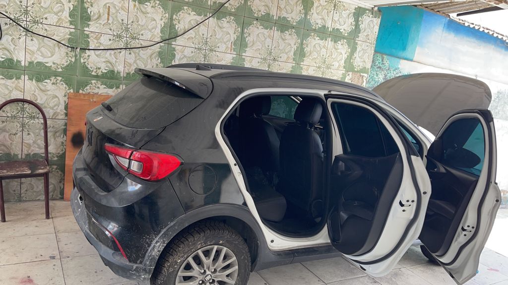 “Nós nos deslocamos até o local denunciado e encontramos William. Durante revista na oficina, localizamos um veículo da marca Fiat, modelo Argo, originalmente de cor branca, que estava pintado de preto e com a numeração do chassi adulterada”, detalhou Castilho.