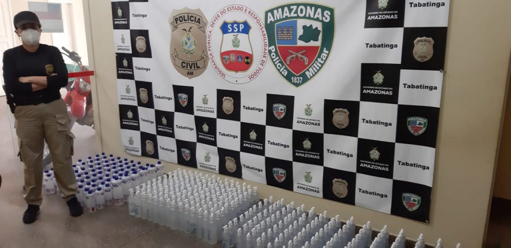 Ao longo da manhã desta sexta-feira (20/03), a equipe de investigação da Delegacia Interativa de Polícia (DIP) de Tabatinga, sob o comando da delegada-geral Emília Ferraz e da delegada Mary Anne Trovão, titular da unidade policial, aprendeu cerca de 342 frascos de álcool liquido e em gel, em cinco estabelecimentos comerciais do município. Com rotulagem irregular, os produtos estavam sendo comercializados com valores abusivos, chegando a ser vendidos por até R$ 50 a unidade.