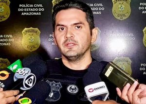 A Polícia Civil do Amazonas, representada pelos delegados Sinval Barroso e Juan Valério, respectivamente diretor do Departamento de Repressão ao Crime Organizado (DRCO) e coordenador do Grupo Força Especial de Resgate de Assalto (Fera), falou na noite desta quinta-feira (23/5), durante coletiva realizada às 19h, no prédio da Delegacia Geral, sobre a apreensão de um fuzil colt calibre 5.56, três carregadores de fuzil, um revólver calibre 38, 150 munições e porções de drogas.