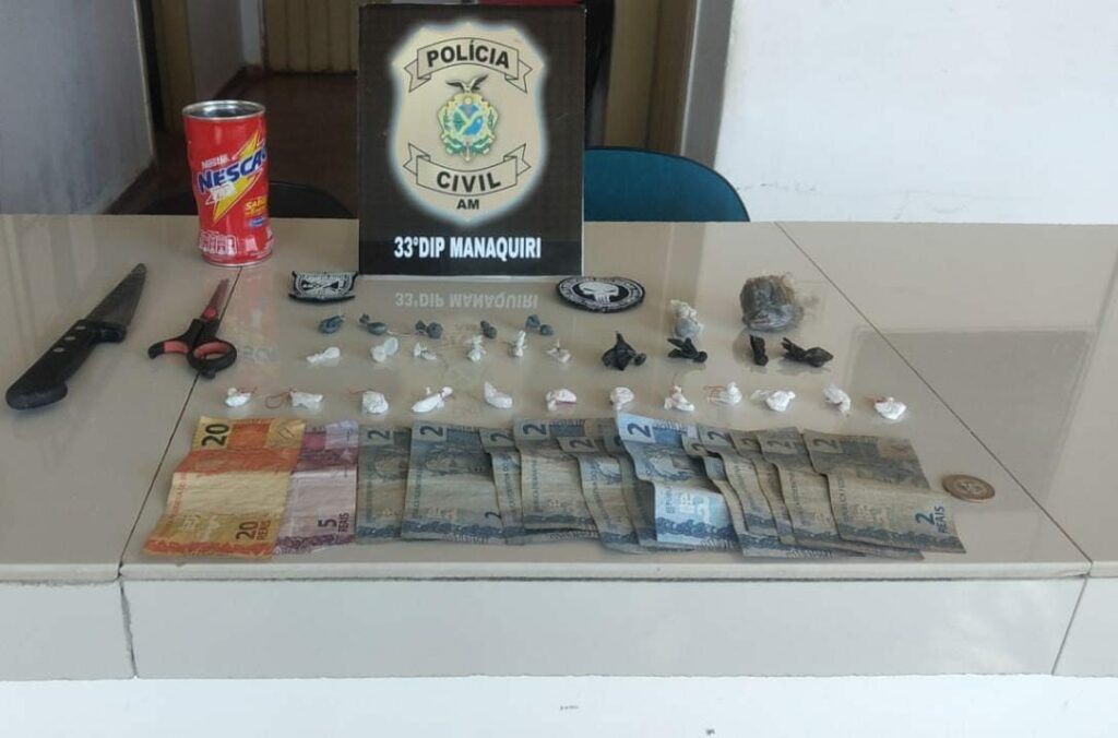 Ao longo da noite de terça-feira (19/05), equipes da Polícia Civil do Amazonas (PC-AM), por meio da 33ª Delegacia Interativa de Polícia (DIP) de Manaquiri (distante 60 quilômetros em linha reta de Manaus), deflagraram ação policial que resultou na prisão em flagrante de Eliton dos Santos Gomes, conhecido como ‘Jatobá’, 31, e Adilene Maciel de Andrade, conhecida como ‘Onça’, 50, ambos pelo crime de tráfico de drogas. A prisão do homem ocorreu no bairro Novo, e a da mulher, no bairro Ajuricaba, em Manaquiri.