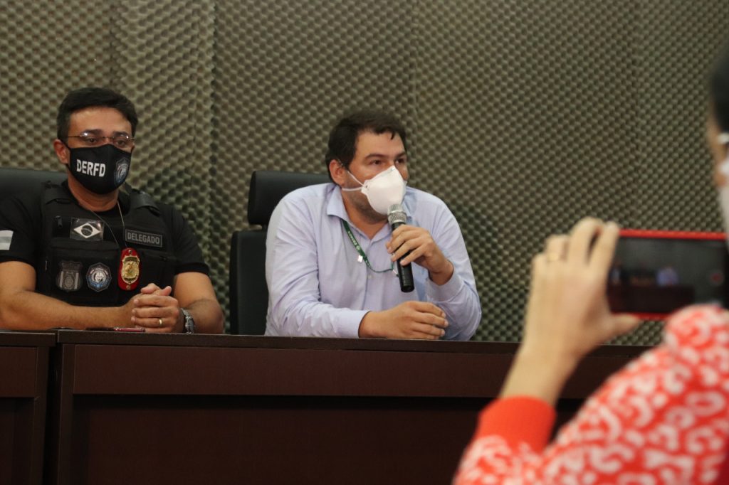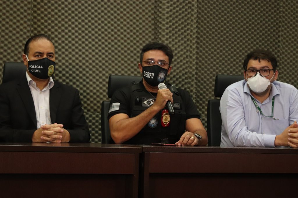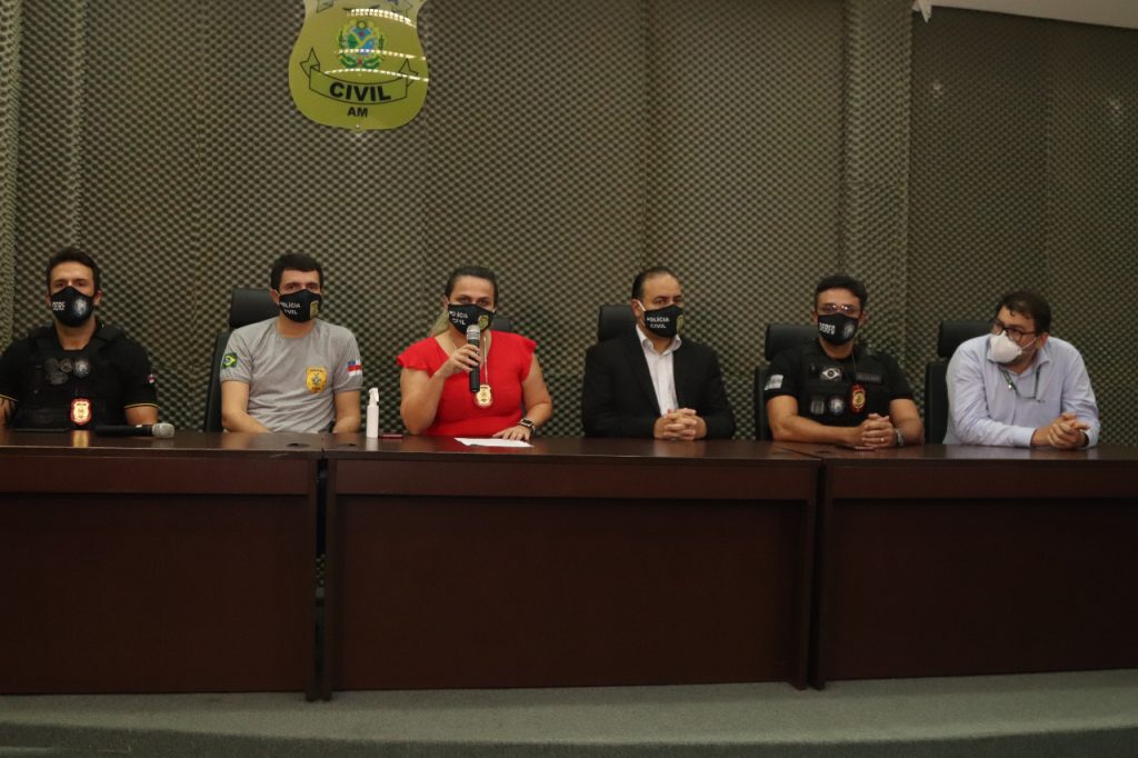 O resultado da ação foi apresentado durante coletiva de imprensa, realizada às 14h30 desta quinta, no prédio da Delegacia Geral, no bairro Dom Pedro, centro-oeste de Manaus, e contou com a presença da delegada-geral da instituição, Emília Ferraz; do delegado-geral adjunto, Tarson Yuri Soares; do delegado Alessandro Albino, diretor do Departamento de Polícia Metropolitana (DPM); além dos delegados Aldeney Goes e Leonardo Marinho, respectivamente titular e ajunto da DERFD, e do assessor jurídico da FCecon, Ricardo Monteiro.