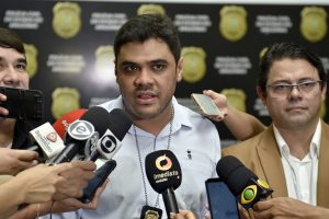 O delegado Marcelo Martins, titular do 24º Distrito Integrado de Polícia (DIP), acompanhado dos delegados George Gomes e Divanilson Cavalcanti, diretor e titular, respectivamente, do Departamento de Polícia Metropolitana (DPM) e 1ª Seccional Sul, falou na manhã desta sexta-feira (7/6), durante coletiva de imprensa realizada às 11h30, no prédio da Delegacia Geral, sobre as prisões, em flagrante, de Alisson Luiz de Souza Izidoro, 33; Anderson Gabriel Queiroz Mesquita, 24; Brena Raquel Mourão Gonçalves, 27, e Thiago Morais Pandura, 25, com duas armas de fogo, munições e drogas sintéticas.