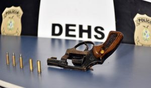 Paulo Martins informou que, durante depoimento na especializada, “Velhinho” relatou que na casa dele, situada no bairro São José Operário, estava escondida uma das armas de fogo utilizadas no crime. Os policiais civis da DEHS se deslocaram até o lugar e, durante revista no imóvel, encontraram um revólver calibre 38, com cinco munições do mesmo calibre, sendo três intactas e duas deflagradas.