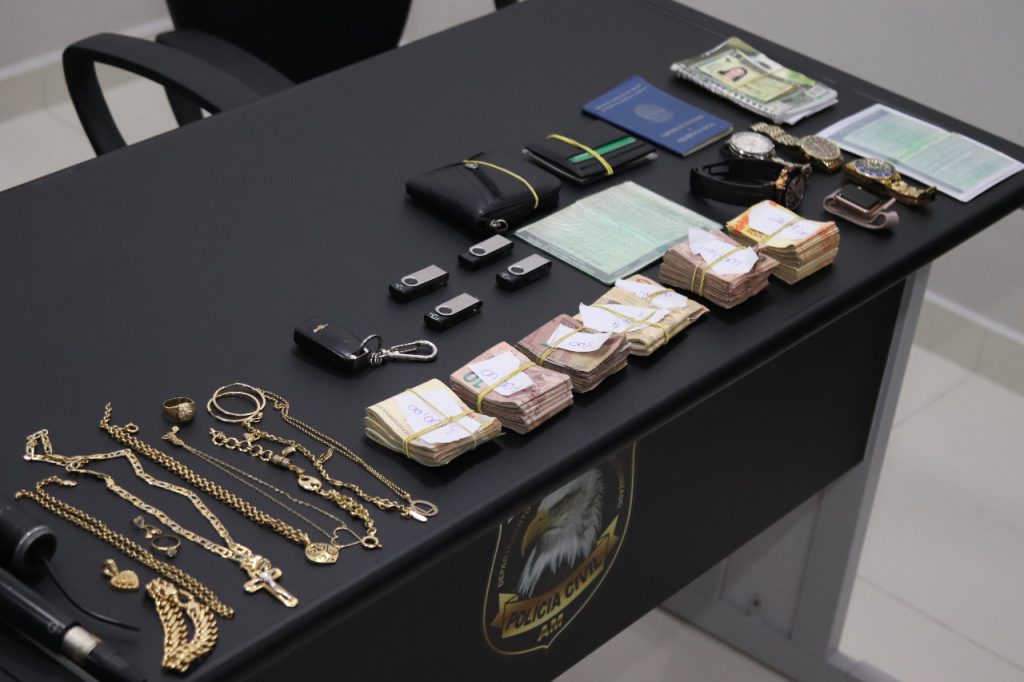 Durante a ação policial, além das prisões, foram cumpridos seis mandados de busca e apreensão. Na ocasião, foram apreendidos dois veículos, celulares, documentos, joias e dinheiro.