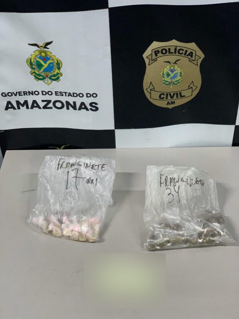 “De posse do mandado, nós nos deslocamos, por volta das 6h, até a primeira casa, situada na rua Cananeia, comunidade Nossa Senhora do Perpétuo Socorro, onde realizamos buscas e apreendemos 34 porções de maconha e 17 trouxinhas de oxi, envolvidas em sacos plásticos, em posse de Francinete. A mulher recebeu voz de prisão em flagrante e foi conduzida ao 6° DIP para os procedimentos cabíveis”, explicou Mafra.