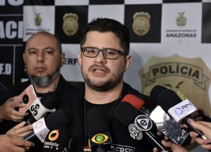 Na manhã desta sexta-feira (24/5), durante coletiva de imprensa realizada às 9h30, no prédio da Delegacia Especializada em Roubos, Furtos e Defraudações (DERFD), os delegados Guilherme Torres e Demetrius Queiroz, respectivamente titular e adjunto da unidade policial, falaram sobre ação policial deflagrada na última quarta-feira (22/5) pela equipe da especializada, que resultou nas prisões, em flagrante, de cinco integrantes de uma organização criminosa por furto a uma empresa situada na zona sul da capital.