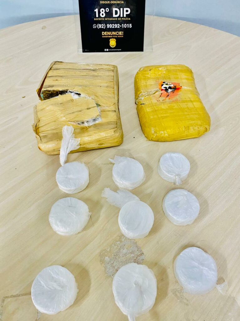 A Polícia Civil do Amazonas (PC-AM), por meio do 18º Distrito Integrado de Polícia (DIP), prendeu, em flagrante na tarde de terça-feira (13/04), por volta das 17h, um homem de 39 anos, por tráfico de drogas. Com ele os policiais apreenderam um tablete de maconha do tipo skunk e outro de cocaína, além de nove tabletes pequenos de cocaína, totalizando cerca de 2,5 quilos de entorpecentes. A prisão ocorreu no bairro Novo Israel, zona norte de Manaus.
