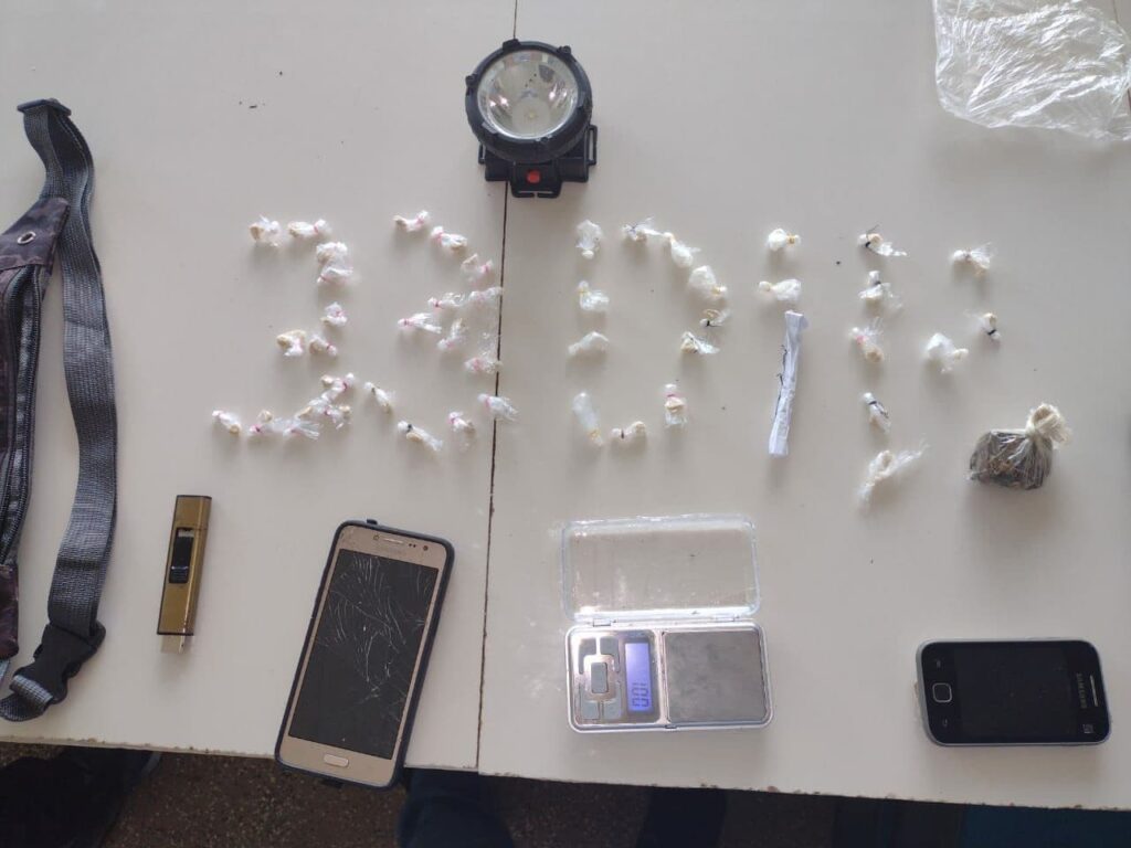 “Com base nas informações, nós nos deslocamos ao endereço e identificamos Tiago. Ele ainda tentou se desfazer de uma mochila, onde encontramos 50 trouxinhas de pedra de oxi. Além disso, apreendemos também, material para produção e comercialização do entorpecente e uma balança de precisão”, detalhou a delegada.