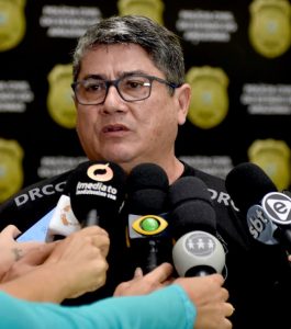 O delegado Normando Barbosa, diretor-adjunto do Departamento de Repressão ao Crime Organizado (DRCO), da Polícia Civil do Amazonas, falou na manhã desta segunda-feira (15/4), durante coletiva de imprensa realizada às 11h, no prédio da Delegacia Geral, sobre ação policial deflagrada no início da tarde de domingo (14/4), por volta de meio-dia, que resultou na prisão, em flagrante, de Leonardo de Almeida Pereira, 23, com 50 quilos de drogas, entre oxi e maconha.