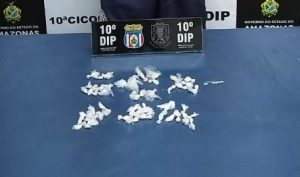 A Polícia Civil do Amazonas, por meio da equipe de investigação do 10° Distrito Integrado de Polícia (DIP), sob o comando do delegado Danilo Bacarin, titular da unidade policial, prendeu em flagrante, na manhã de quinta-feira (23/5), por volta das 11h30, Mario Henrique Maquiné Alves, 19, em posse de 54 trouxinhas de cocaína. No momento da prisão, foi verificado em aberto, em nome do infrator, mandado de prisão preventiva por homicídio. Em razão disso, foi dado cumprimento à ordem judicial.