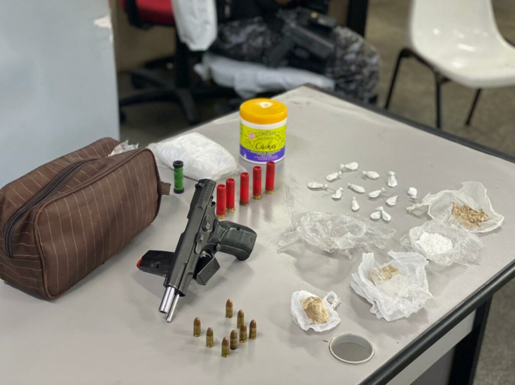 Ainda conforme a autoridade policial, a prisão do trio foi efetuada no bairro Lago Azul, zona norte da cidade. Durante a ação policial foram apreendidas quatro porções de pedra de cocaína, uma outra porção e treze trouxinhas da mesma substância ilícita, uma arma de fogo calibre 9mm com numeração suprimida, oito munições do mesmo calibre e cinco munições de espingarda calibre 28.