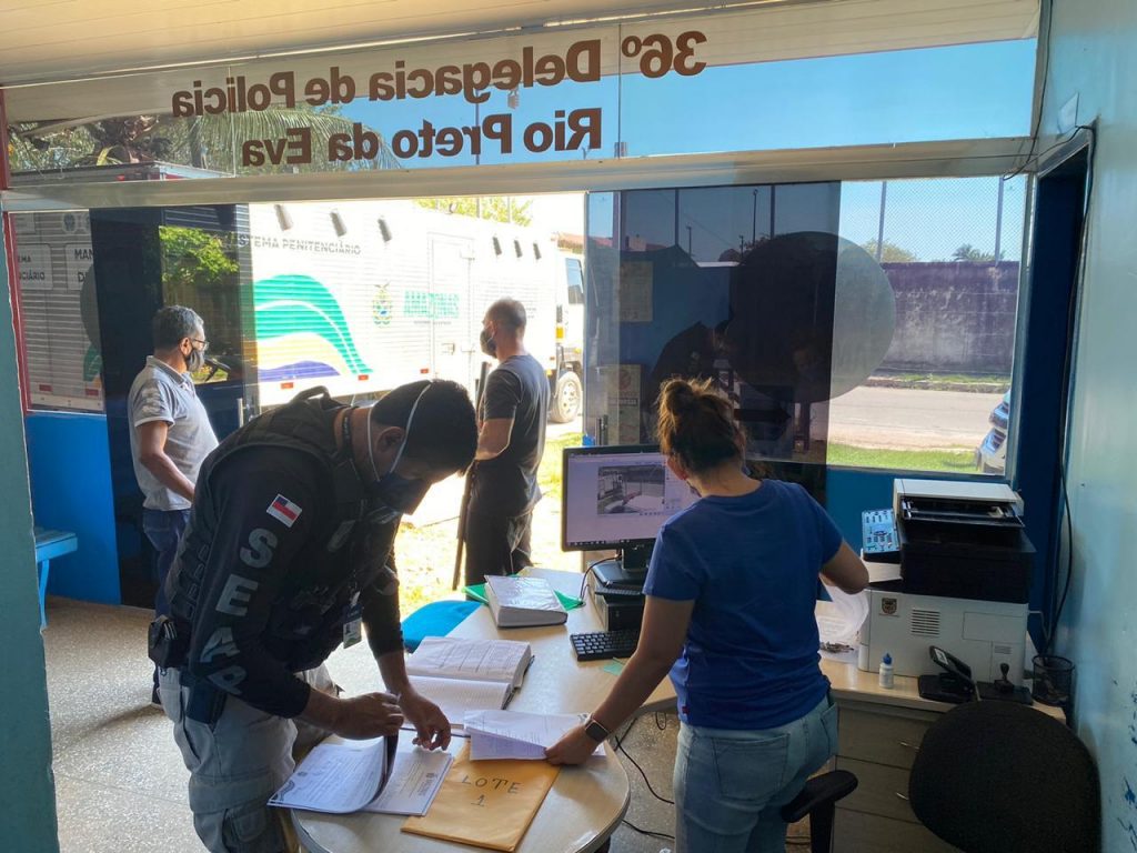 Policiais civis da 36ª Delegacia Interativa de Polícia (DIP) de Rio Preto da Eva (distante 57 quilômetros em linha reta da capital) transferiram, nesta quarta-feira (29/07), por volta das 10h, 11 detentos que estavam custodiados no município para a capital. A ação ocorreu sob a coordenação da delegada Sylvia Laureana Arruda Chaves e do delegado Carlos Alberto Alencar, titular e adjunto da unidade policial, respectivamente, em parceria com agentes da Secretaria do Estado de Administração Penitenciária (Seap).
