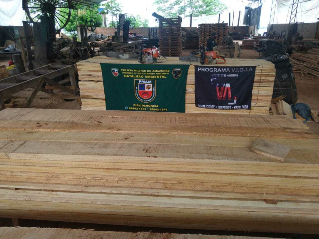Em outra fiscalização, por volta das 11h do sábado, foram apreendidos aproximadamente 115 metros cúbicos de madeira serrada de diversos tipos, sem documentação legal expedida pelo órgão competente, em Manacapuru, na Região Metropolitana. Além disso, também foram identificadas duas serrarias que funcionavam clandestinamente e tiveram suas atividades encerradas e embargadas pelo órgão municipal ambiental.