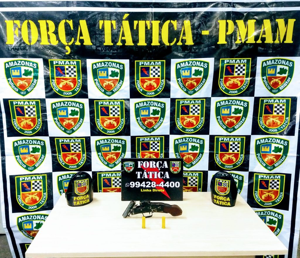 O adolescente de 14 anos, estava em um veículo em posse de uma arma de fogo de fabricação caseira e munições, no bairro Cidade Nova, na zona norte da capital. (Imagem: Divulgação PMAM).