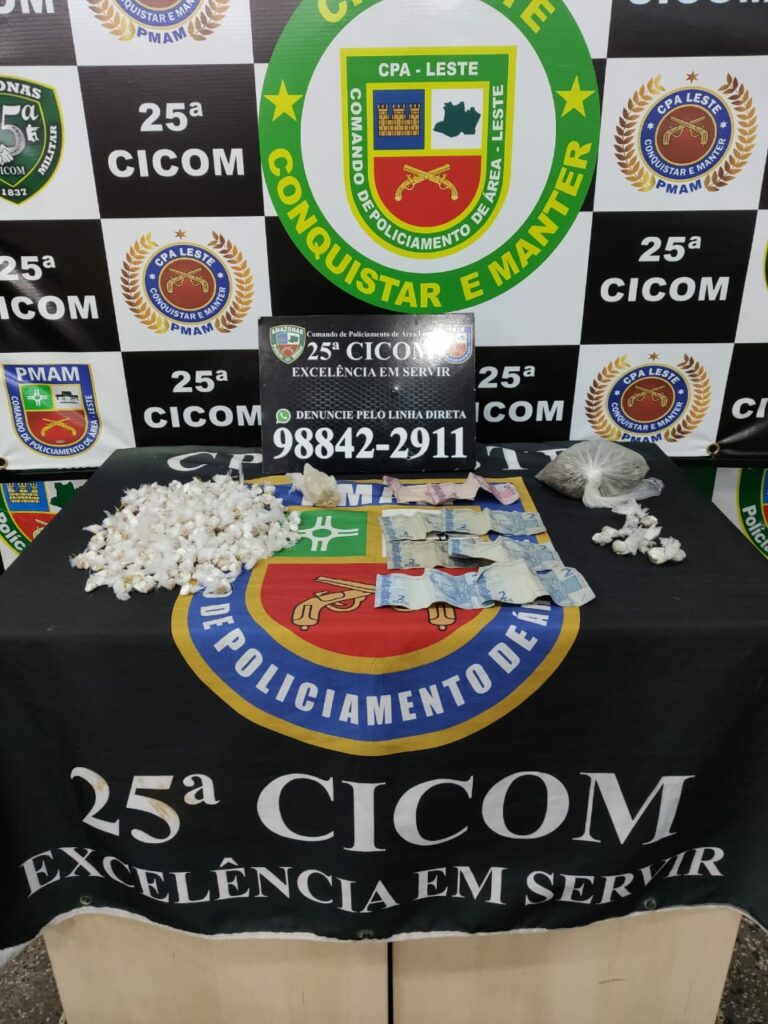 A equipe fazia patrulhamento na rua N do Armando Mendes quando avistou várias pessoas, que fugiram ao perceber a aproximação policial. Os policiais alcançaram e abordaram dois dos suspeitos, com quem foram encontrados 248 kits de trouxinha de oxi e pasta, oito trouxinhas de maconha, uma porção grande de maconha, uma porção grande de oxi e R$ 22 em espécie.