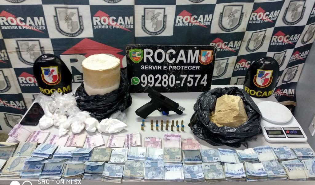 Na ação, foram encontrados ainda 6,5 quilos de supostamente oxi, cinco porções médias de supostamente cocaína, 25 porções pequenas de supostamente cocaína, três porções médias de supostamente oxi, 14 porções pequenas de supostamente maconha, R$ 934 reais em espécie e uma balança de precisão.