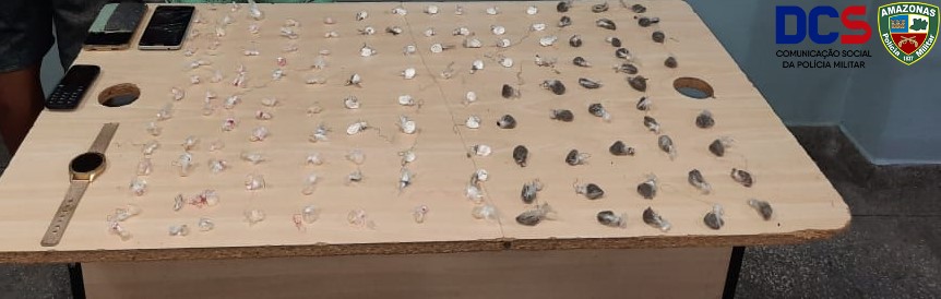 Na noite da última quarta-feira (10/03), dois homens, de 20 e 22 anos, foram detidos por policiais militares da 6ª Companhia Interativa Comunitária (Cicom) com mais de 100 trouxinhas de drogas, entre elas, maconha, oxi e cocaína. O fato ocorreu no bairro Vale do Sinai, na zona norte de Manaus.