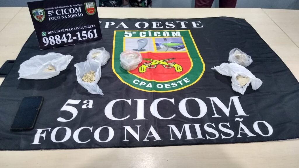 Na noite de sábado (27/02), policiais militares da 5ª Companhia Interativa Comunitária (Cicom) detiveram dois homens de 19 e 20 anos, juntamente com um menor de 17 anos, que foi apreendido, depois que o trio foi encontrado porções de drogas e objetos suspeitos na rua Presidente Kennedy, bairro Santo Antônio, zona oeste de Manaus.