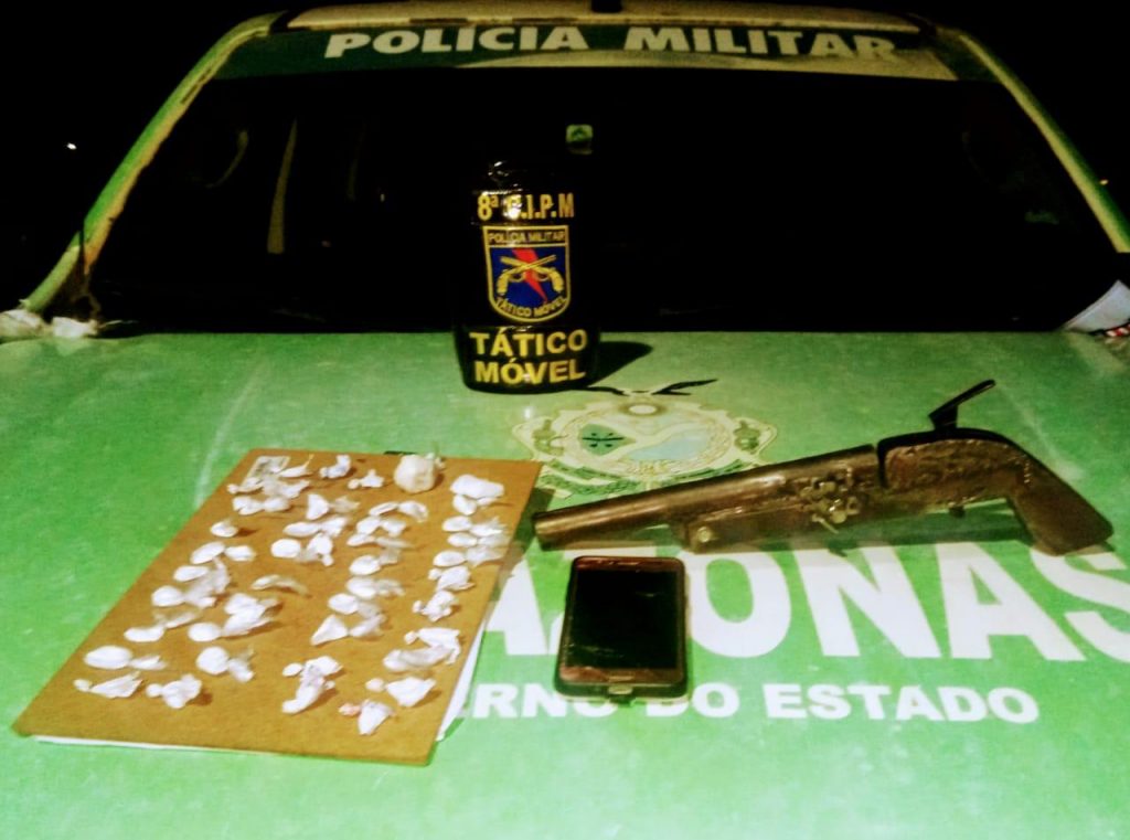 Uma dupla foi detida por equipe da 8ª Companhia Independente de Polícia Militar (CIPM) de Iranduba (a 36,8 quilômetros de Manaus) em razão de suspeita de assalto, além de posse de arma de fogo e entorpecentes. A ação ocorreu na madrugada deste domingo (05/07), após os policias terem sido acionados por frentistas de um posto de gasolina localizado na estrada Carlos Braga.