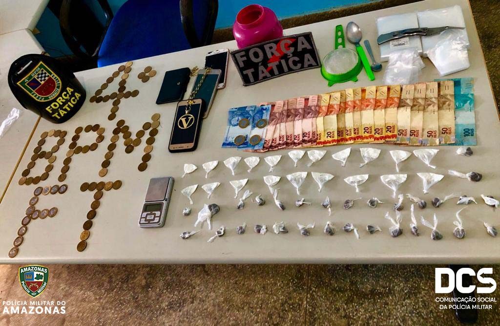 Uma equipe do 4º Batalhão de Polícia Militar (4º BPM) de Humaitá, município situado a 590 quilômetros de Manaus, deteve dois homens, de 22 e 26 anos, com 20 porções de supostamente cocaína, 30 porções de supostamente maconha, balança de precisão e uma quantia de R$ 651.