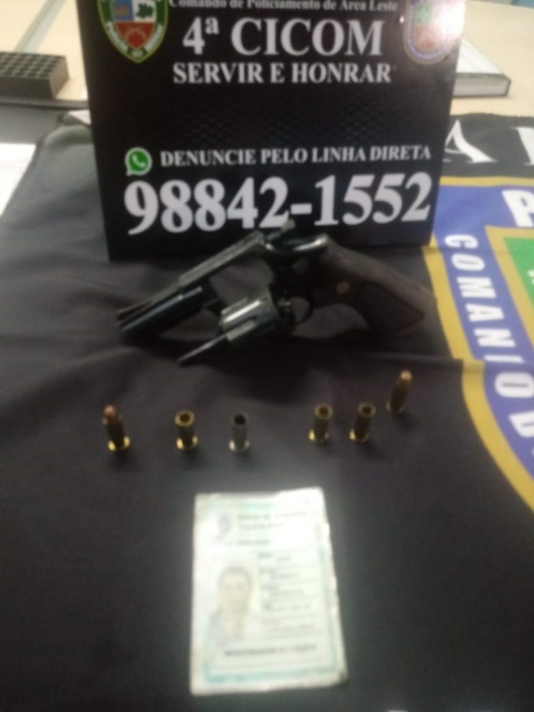 Os policiais foram acionados pelo Centro Integrado de Operações de Segurança (Ciops) que os informou sobre os disparos de arma de fogo em via pública. A equipe foi ao local e encontrou o suspeito. Na abordagem, os policiais encontraram com ele uma arma de fogo calibre 38, com quatro munições deflagradas e duas munições percutidas e uma identidade da Polícia Civil do Estado do Amazonas.
