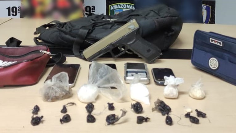 Em outra ocorrência, a viatura Reserva-04, da 19ª Cicom, deparou-se com outro roubo, onde a vítima estava rastreando seu aparelho celular, que estaria na rua 2A, bairro Nova Esperança, para onde a equipe de plantão reserva se deslocou, abordando dois suspeitos, que foram detidos. Com eles foram encontrados três celulares. Uma balança de precisão, 12 trouxinhas de Oxi, uma porção de Maconha, duas porções de cocaína, duas porções de Crack.