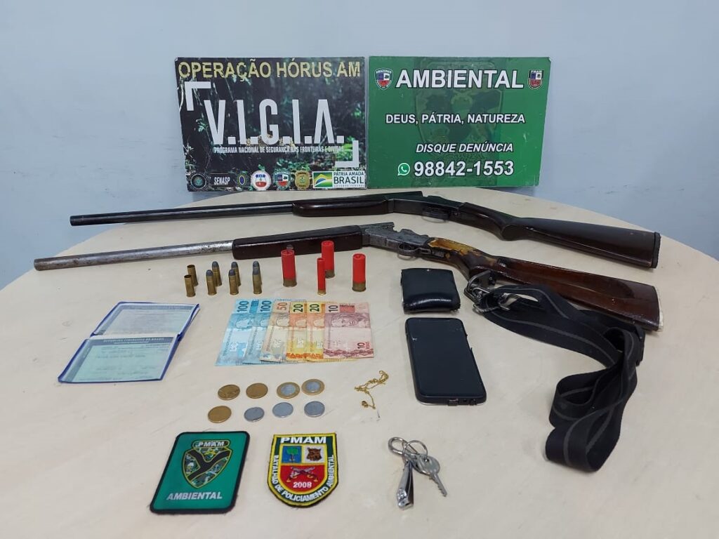 Na chegada ao local informado para averiguar a denúncia, os policiais ambientais constataram que se tratava de uma Área de Preservação Permanente (APP), que estava tendo uma parte desmatada. Durante a fiscalização, um homem, morador do bairro da Paz, na zona centro-oeste, foi detido em posse de duas armas de fogo, sendo uma espingarda calibre 36 e uma espingarda calibre 12, e também seis cartuchos de calibre 44 intactos; dois cartuchos do mesmo calibre deflagrados; três cartuchos calibre 12 intactos e um cartucho calibre 36 intacto.