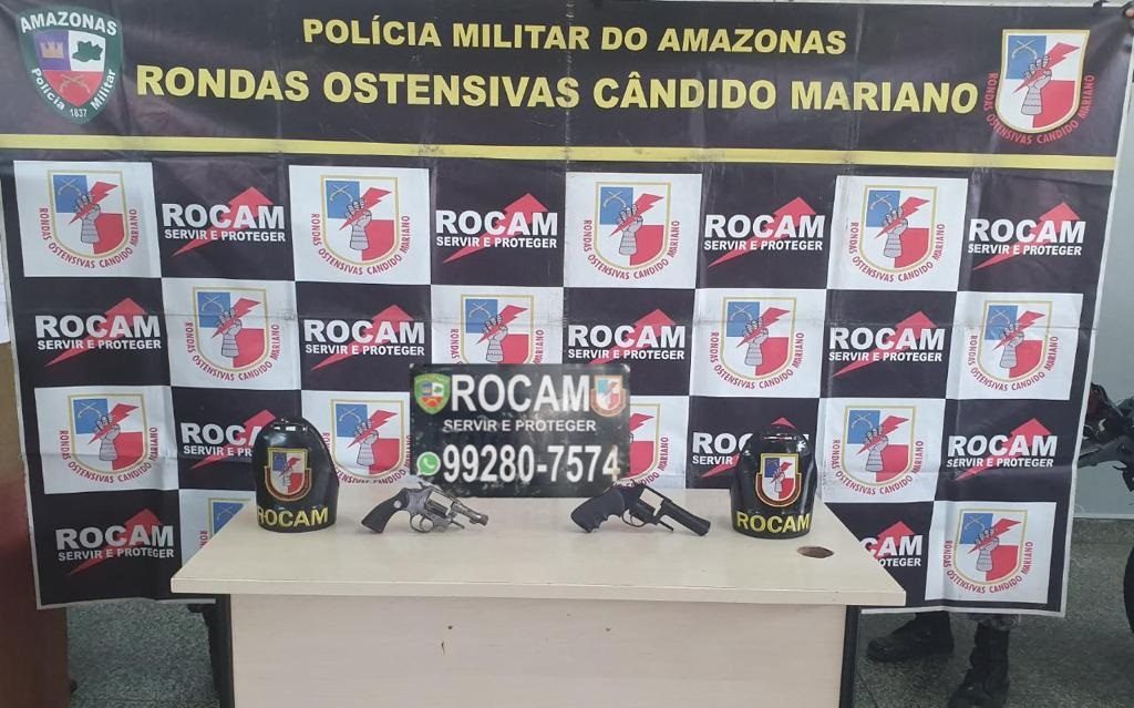 Policiais militares da Rondas Ostensivas Cândido Mariano (Rocam) detiveram, na tarde desta quarta-feira (15/01), um homem em posse de duas armas de fogo, na rua Osmar Lins, bairro Santo Antônio, zona oeste de Manaus.
