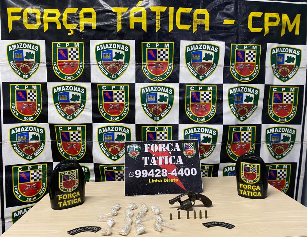 Policiais militares da Força Tática detiveram, na noite da última terça-feira (28/07), um homem de 21 anos por tráfico de entorpecentes e porte ilegal de arma de fogo. O fato ocorreu na comunidade Jesus me Deu, zona norte da capital amazonense.