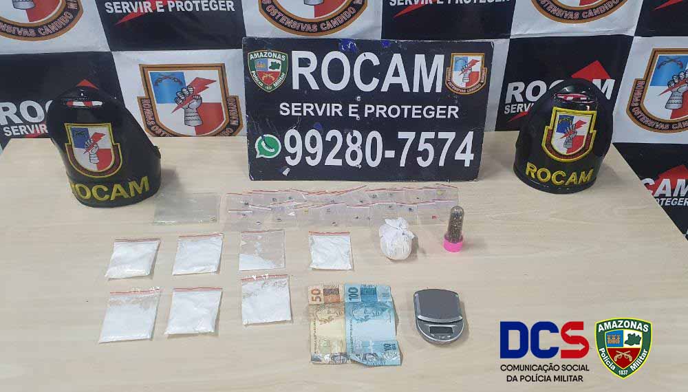A Polícia Militar, por meio das Rondas Ostensivas Cândido Mariano (Rocam), deteve, na tarde de segunda-feira (04/01), uma jovem de 21 anos, por envolvimento no tráfico de drogas, no Conjunto Residencial Viver Melhor, no bairro Cidade Nova, na zona norte da cidade.