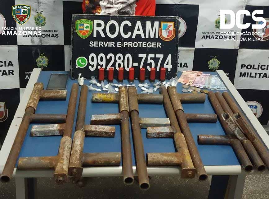 Policiais Militares da Rondas Ostensivas Cândido Mariano (Rocam) detiveram, na tarde desta quinta-feira (24/10), um homem de 22 anos suspeito de porte ilegal de arma de fogo e tráfico de drogas no Conjunto Residencial Viver Melhor I, bairro Santa Etelvina, zona norte da capital. Com ele os policiais aprenderam sete armar de fabricação caseira, sete munições intactas, calibre 12, marca CBC, um aparelho celular Samsung, 16 trouxinhas e uma porção de supostamente entorpecente e a quantia de R$ 44,95 em espécie.